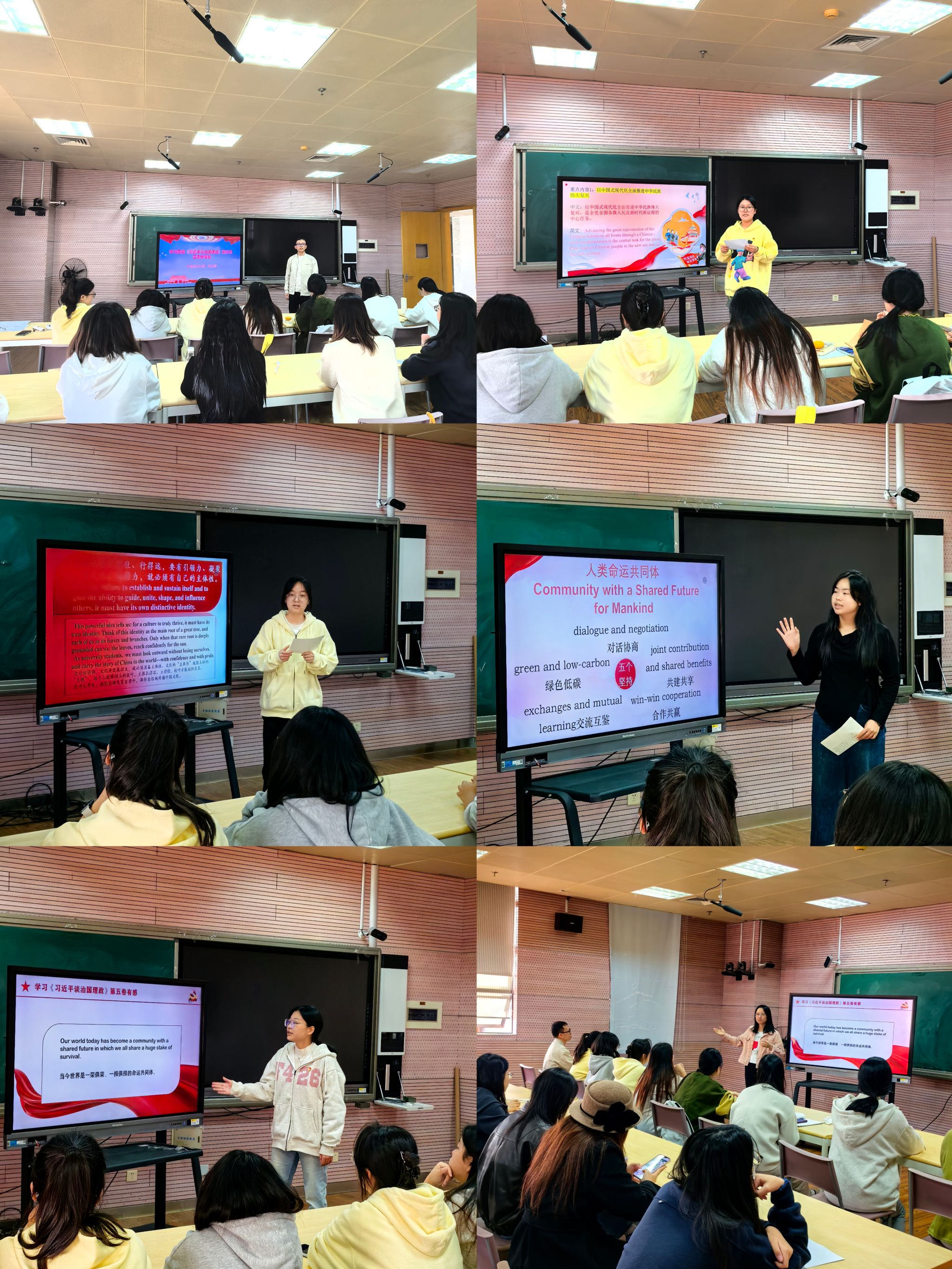 随后,学生第一党支部召开学习贯彻《习近平谈治国理政》第五卷交流分享会,学生党员们用中英双语围绕“人民至上“、”中国式现代化“,“人类命运共同体”等关键词进行阐述,纷纷表达了要将青春梦想融入实现中国梦伟大新征程的决心和责任感。教工党支部党员老师对他们的分享进行点评。