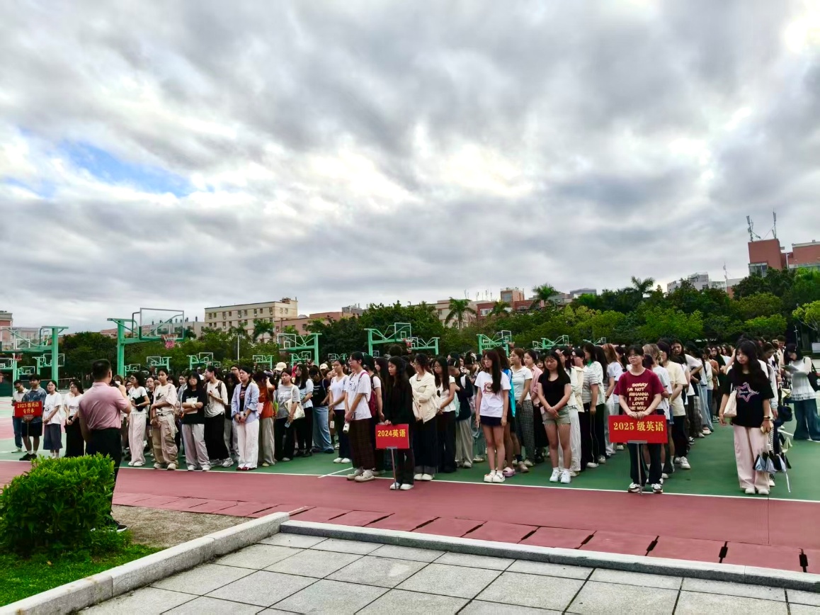 2025年9月26日,外语系举行了升旗仪式并开展“国旗下讲话”主题教育活动,活动由系党总支书记徐泉辉主持,全体辅导员和全体非毕业班学生参加。
