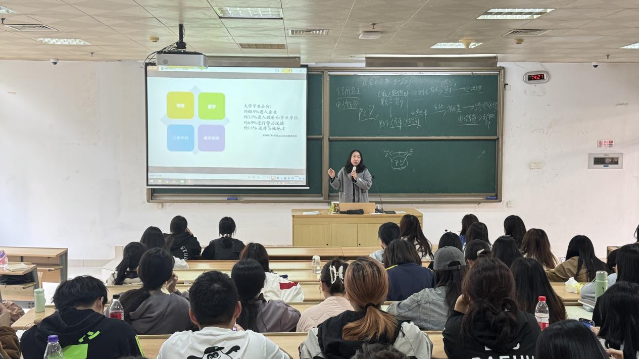 12月3日下午,外语系在教学楼3-205开展了“英语专业考研方向深度解码”专题讲座。本次讲座特邀万学教育集团厦门分校副校长苏艳艳担任主讲,面向英语专业学生,系统解析了考研方向选择、学硕与专硕区别、跨专业考研路径及复合学科发展前景,并提供了科学备考指导。